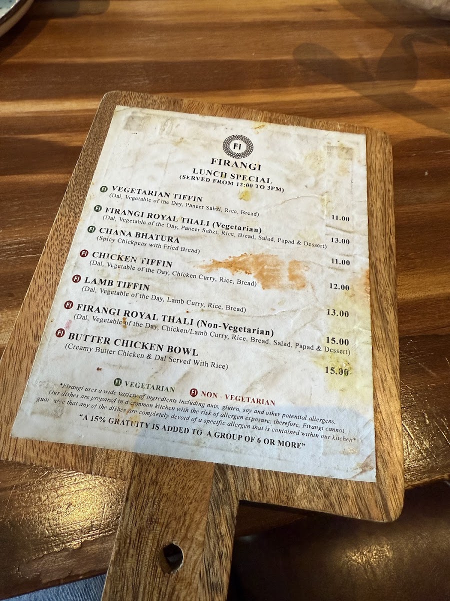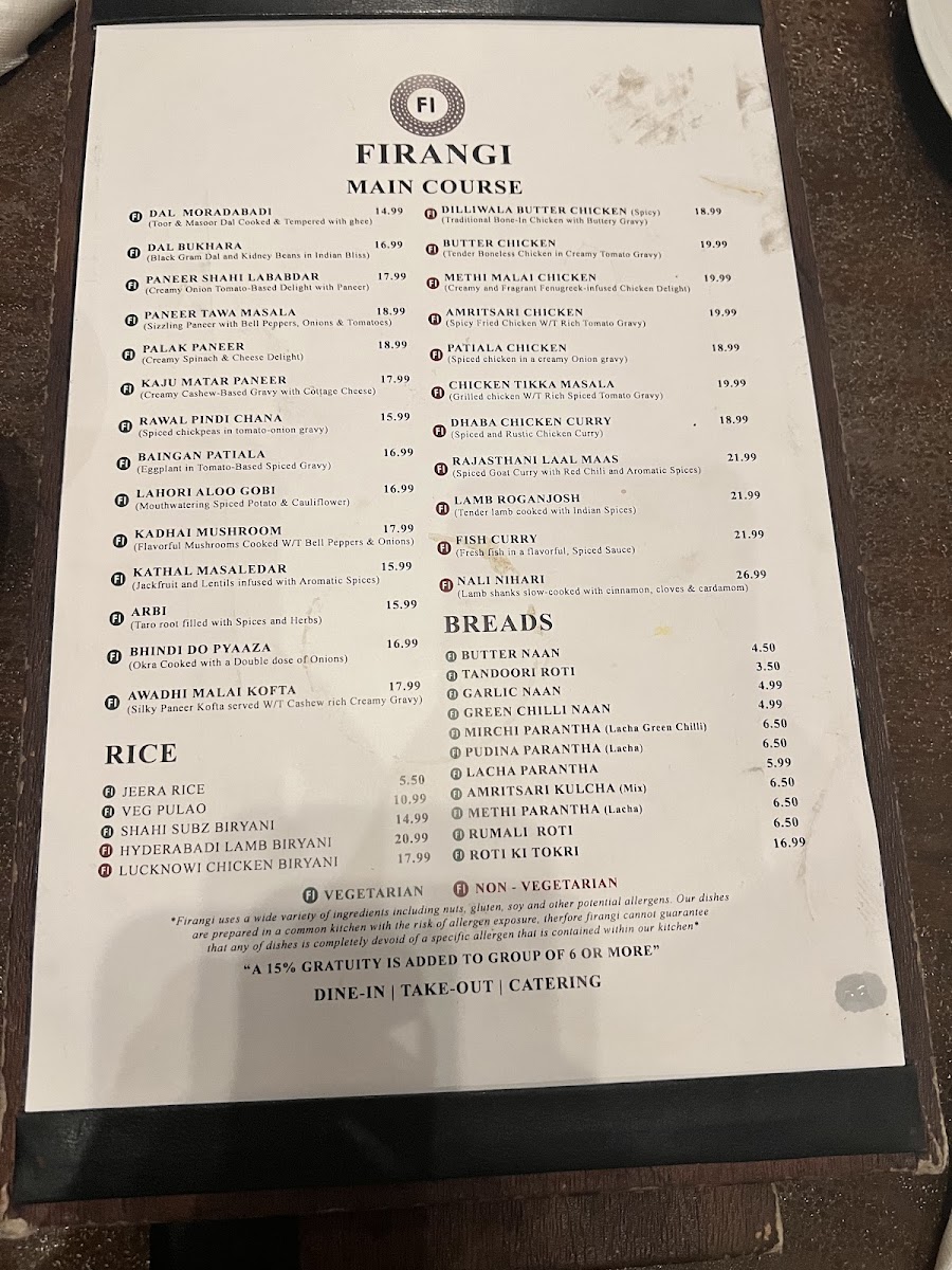 Firangi Indian Restaurant & Bar Menu
